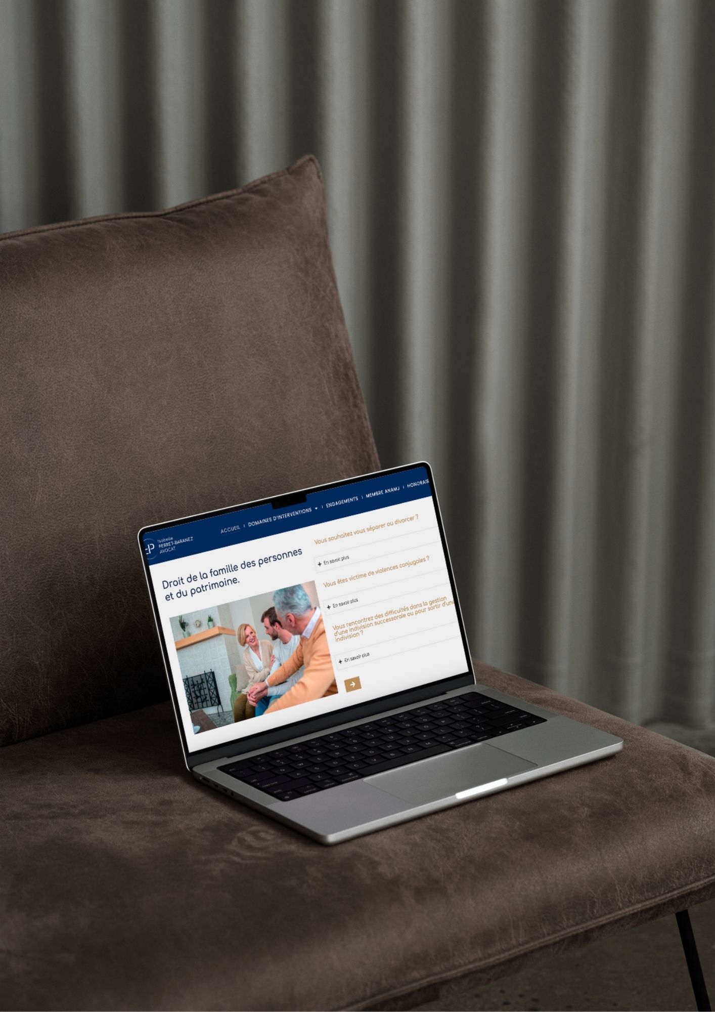 Pour ce projet, nous avons imaginé un logo typographique épuré, combiné à un pictogramme créé à partir des initiales I, P et B. La forme évoque discrètement la balance de la justice, symbole fort du métier d’avocat. Le résultat : un logo moderne, minimaliste et élégant, décliné pour tous les supports de communication. La couleur et la typographie sans sérif aux bords arrondis apportent dynamisme et douceur, tout en affirmant une identité visuelle professionnelle et unique. Un site internet sobre et professionnel : perretbaranez.com, pensé pour valoriser son expertise juridique tout en assurant une navigation claire et fluide, accompagne cette nouvelle identité.