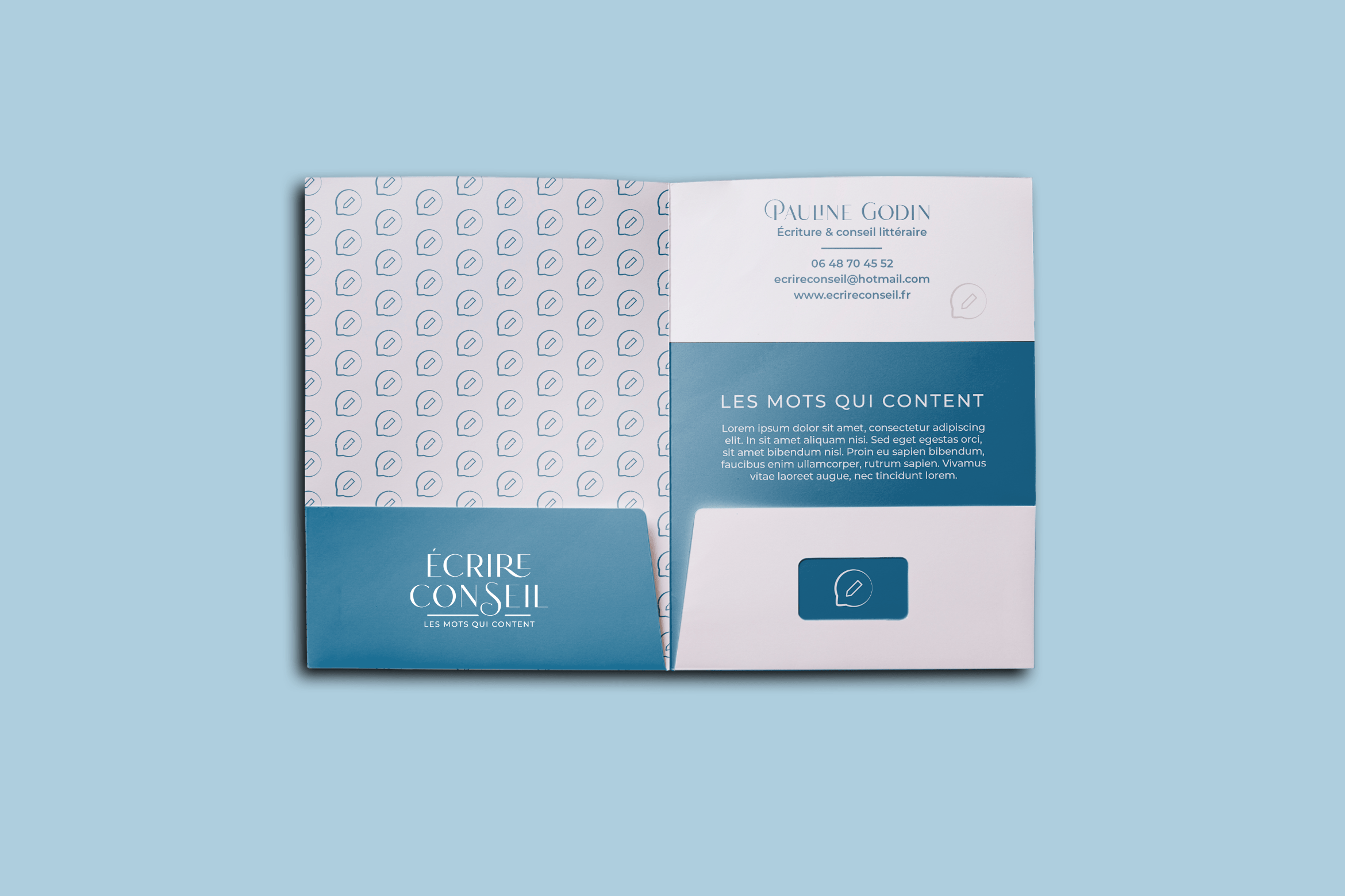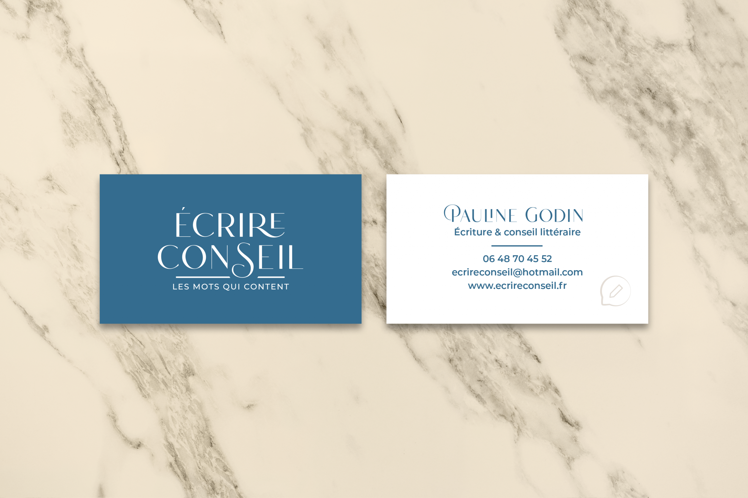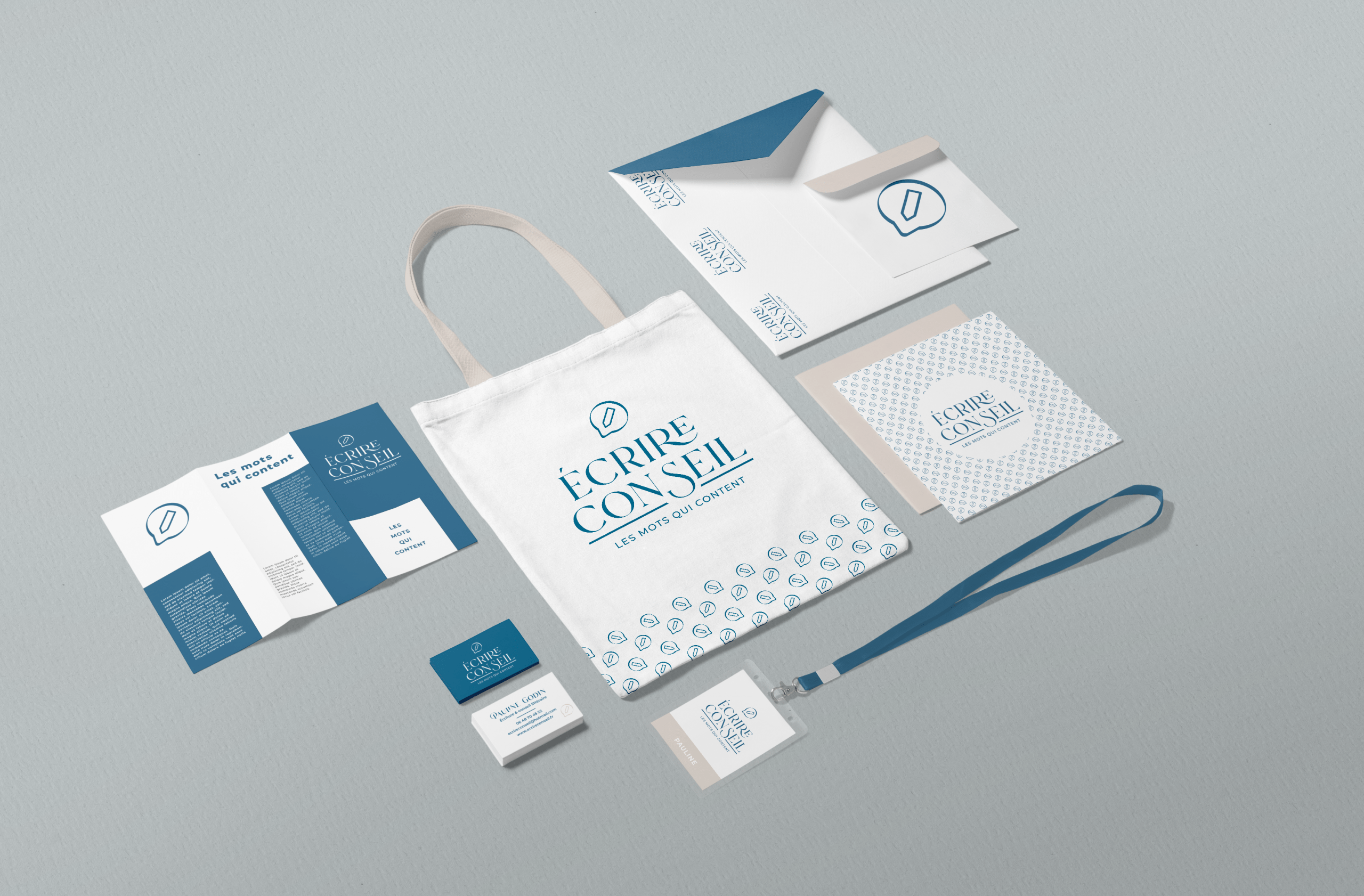 Conception du logo et de l’identité graphique d’Écrire Conseil, cabinet de conseil en écriture. Une typographie inspirée du trait d’une plume, et un pictogramme alliant plume et discours pour incarner leur expertise.