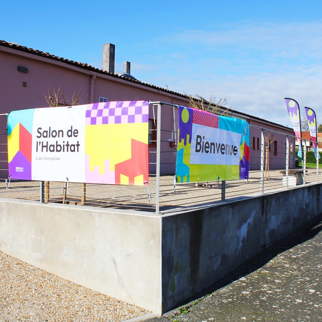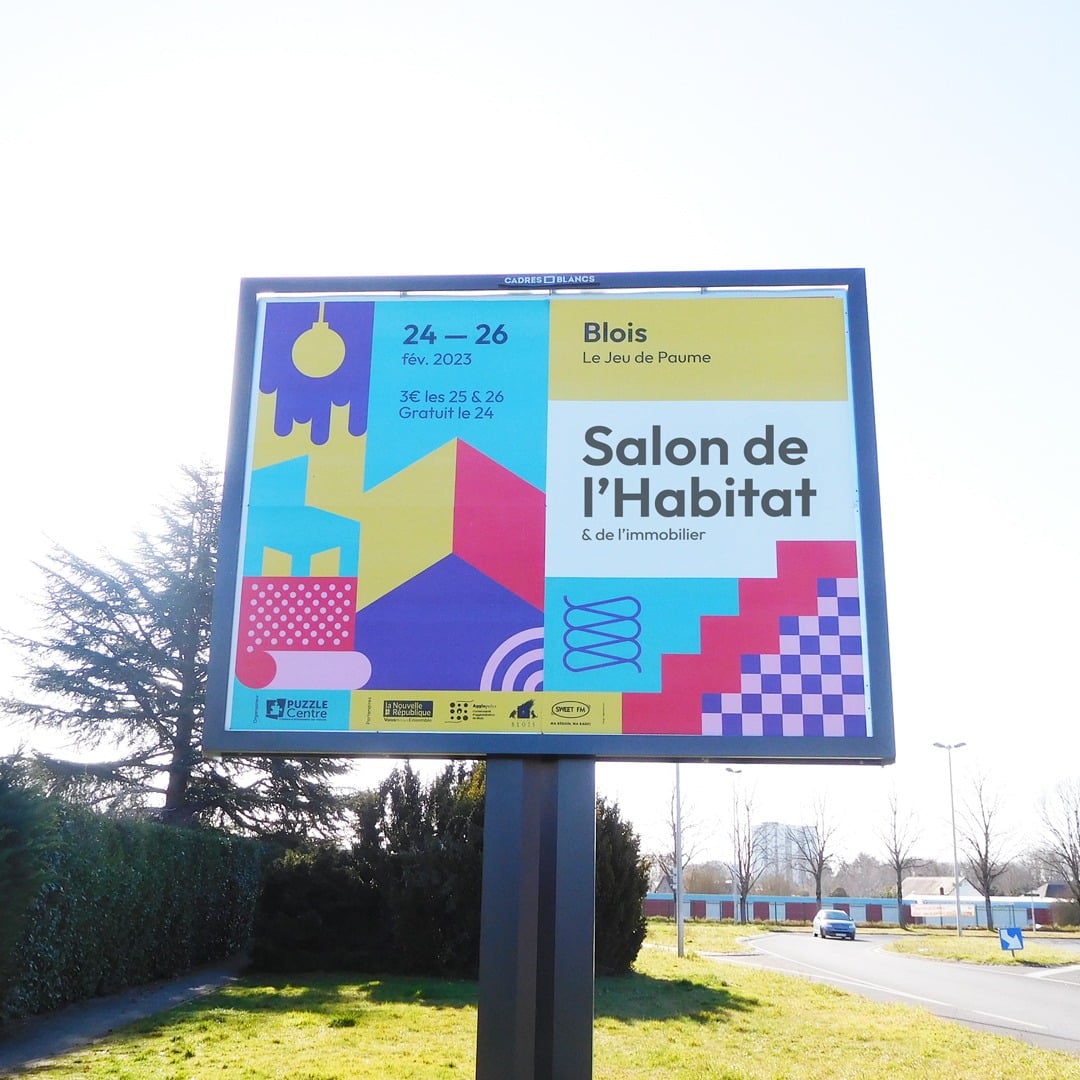 Déclinaison graphique de l’affiche du Salon de l’Habitat & de l’Immobilier, organisé par Puzzle Centre. Plus de 180 supports créés pour cet événement. Affiche dynamique, moderne et colorée, en collaboration avec Des Cheval.